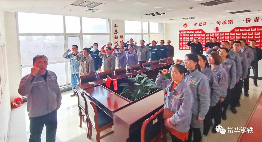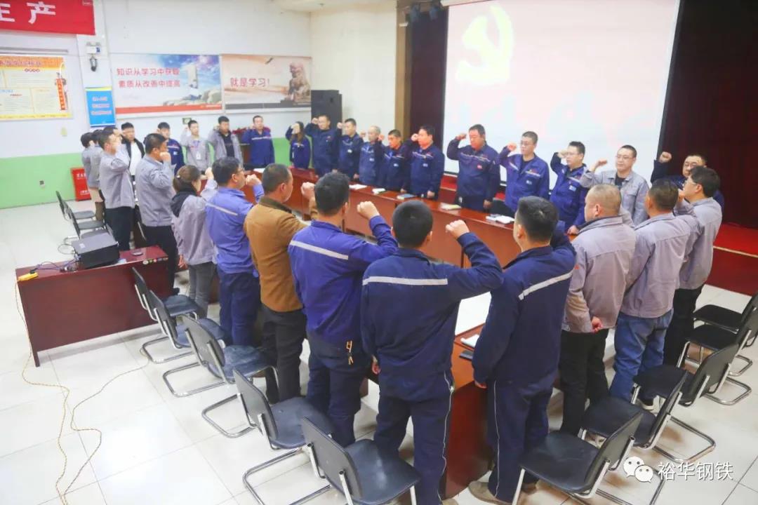 在分廠黨支部領(lǐng)導(dǎo)的帶領(lǐng)下重溫入黨誓詞。