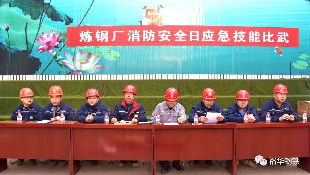 本次活動由煉鋼廠安全科科長李世濤主持,公司安全總監周揚、煉鋼廠廠長李波、生產副廠長馬建楠、設備副廠長唐國新、安監處副處長趙文有出席本次應急演練活動。
